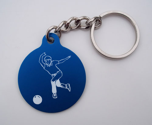 The image on this key chain is laser-etched on to one side of a colored anodized aluminum pendant. Your custom text will be engraved on the reverse side.