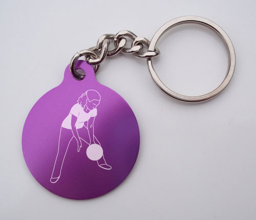 The image on this key chain is laser-etched on to one side of a colored anodized aluminum pendant. Your custom text will be engraved on the reverse side.