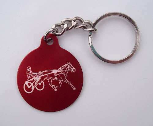 The image on this key chain is laser-etched on to one side of a colored anodized aluminum pendant. Your custom text will be engraved on the reverse side.