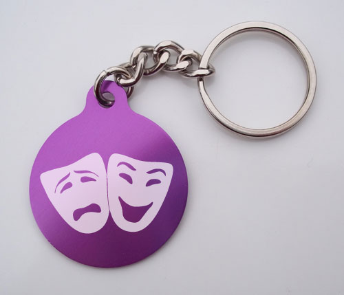 The image on this key chain is laser-etched on to one side of a colored anodized aluminum pendant. Your custom text will be engraved on the reverse side.