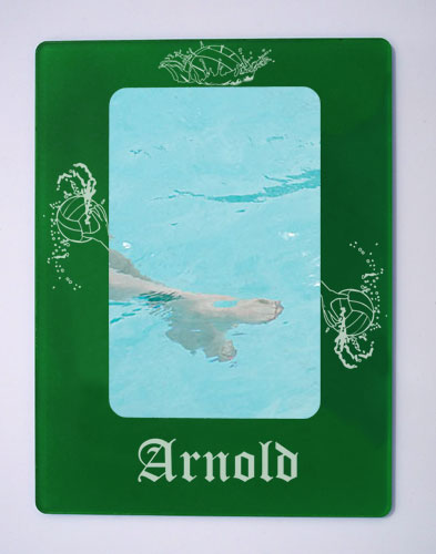 This frame is a fun way to remember your waterpolo memories! Made from 1/8" thick clear acrylic that has been painted on back side of the frame. Your photo slides in the back and can easily be changed whenever you like! Great for displaying on the refridgerator, filing cabinet or magnetic bulletin board.