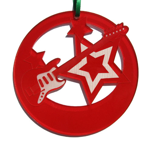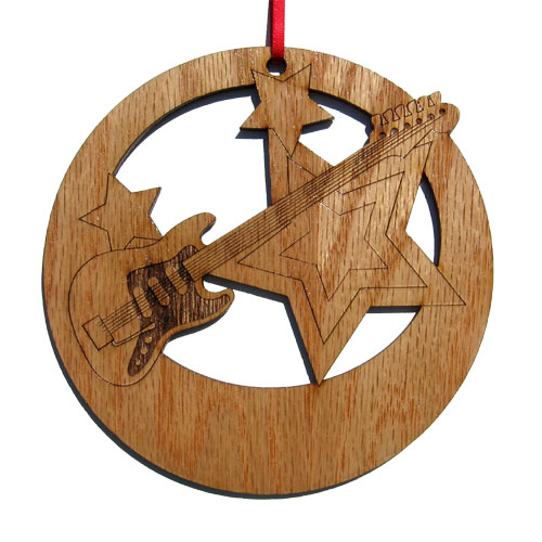 Choose from 1/8" Oak Ply or 1/8" thick clear acrylic that has been painted on back. A fun holiday keepsake for guitar lovers!