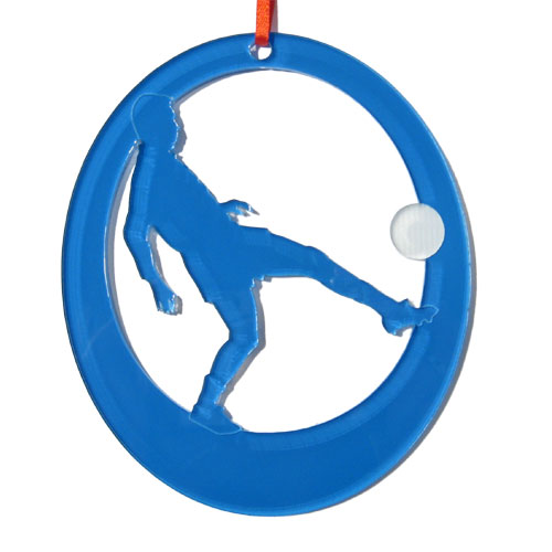 Choose from 1/8" Oak Ply or 1/8" thick clear acrylic that has been painted on back. A fun holiday keepsake for soccer lovers!